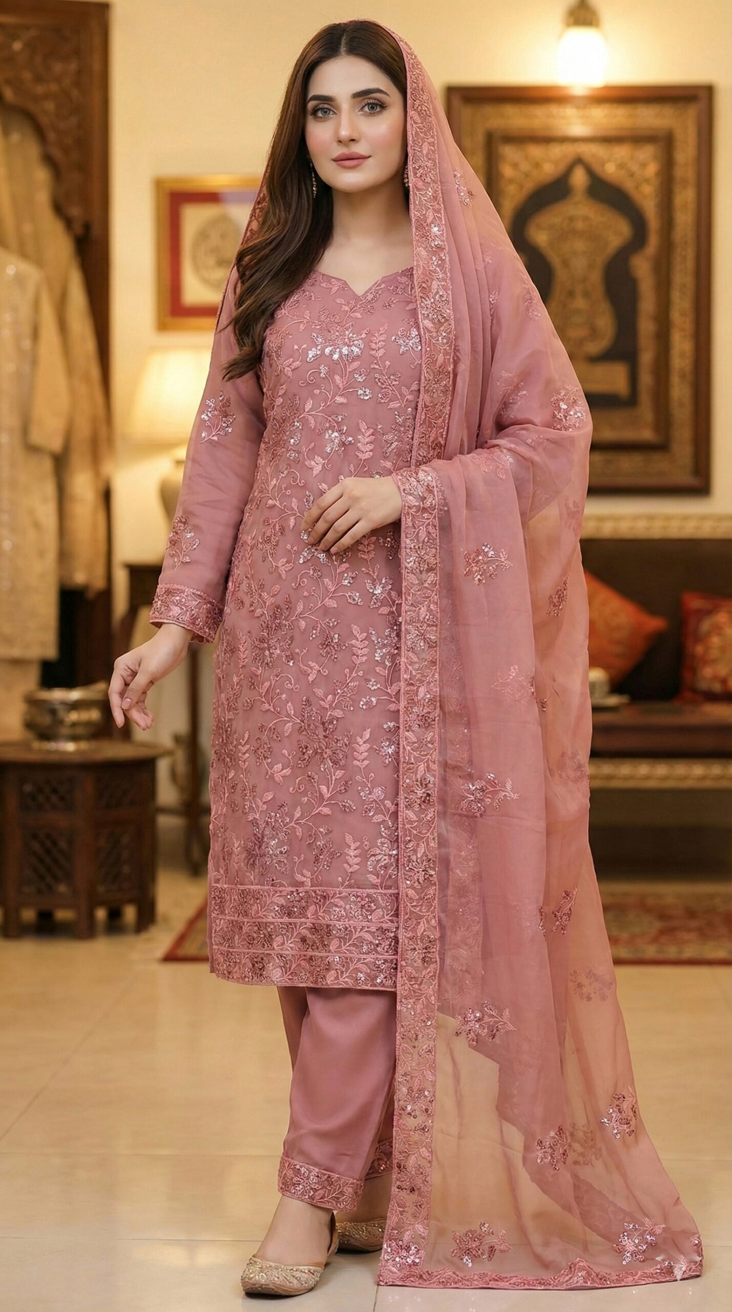 Whether it’s for Eid, a wedding reception, or a formal family gathering, this outfit ensures you stand out with grace and poise.