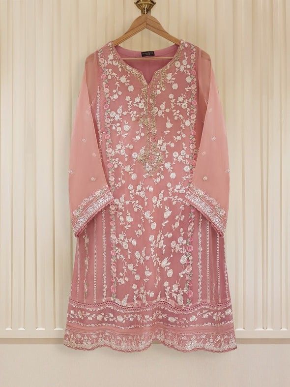 Women’s Dusty Mauve Georgette Salwar Kameez with Intricate Zari and Sequin Embroidery